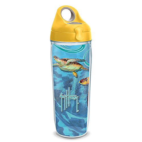 Tervis 1230722 Guy Harvey Turtle Wrap Water Bottle with Yellow WB Lid, 24 oz, Clear