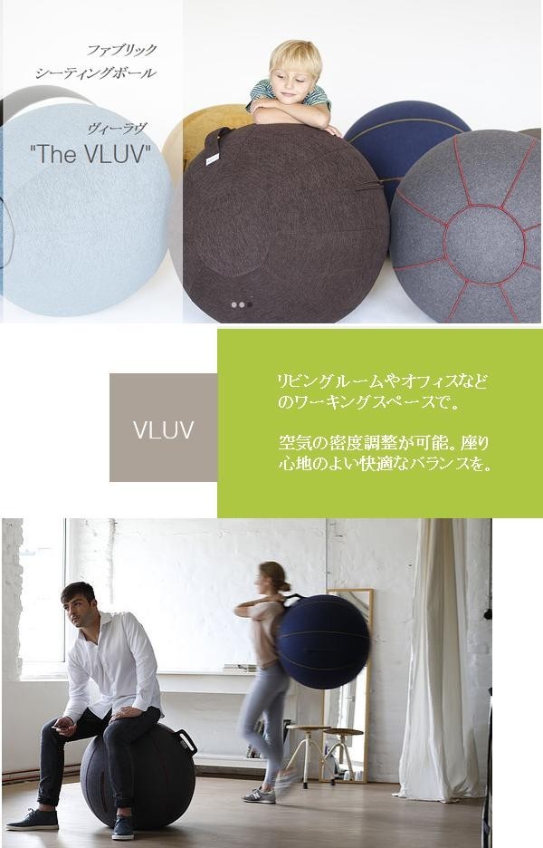 ヴィーラヴは、空気を入れて膨らませる、ファブリックで覆われたシーティングボールです。ファブリックはソファに使用されているものと同じ、手触りのよい素材を厳選しています。真っ直ぐに健康的に座れるようにデザインされています。 |
