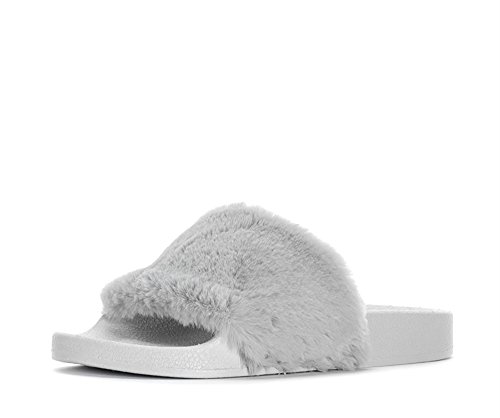 Binding : Apparel Product Description These trendy Jeffrey D faux fur slip-on slides will be your go-to sandals this season! There's nothing quite like slipping your feet into a pair of welcoming furry fur slides. Perfect for wearing outside or inside your home! These fuzzy slippers are made with an open toe and a thick, molded footbed. 0