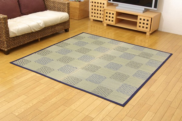 モダンな和柄のい草カーペットです。ボリュームがあり、織りで凹凸を出しています。国産(九州産)のい草を使用しています。一本一本が太く、表皮が厚く繊維がキメ細かいので弾力性があり、耐久性に優れています。い草には空気の自然浄化作用、湿度の調節作用などがあります。また汚れにくく、使用するうちに黄金色に変化し味が出ます。い草に青森ヒバ加工を施しています。(抗菌、防臭効果)