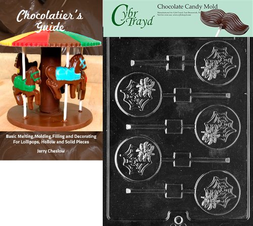 Cybrtrayd "Spider in Web Lolly" Halloween Chocolate Candy Mold with Chocolatier's Guide
