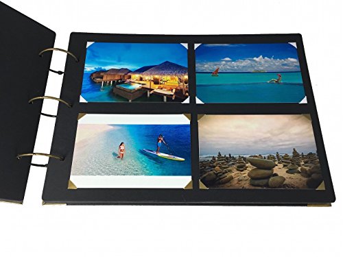 Black Glitter - Extra Large Scrapbook DIY Photo Album w/Mountable Photo Frame and Protective Cover, Wedding Guest Book, Photo Booth Album (Landscape, Black Paper)