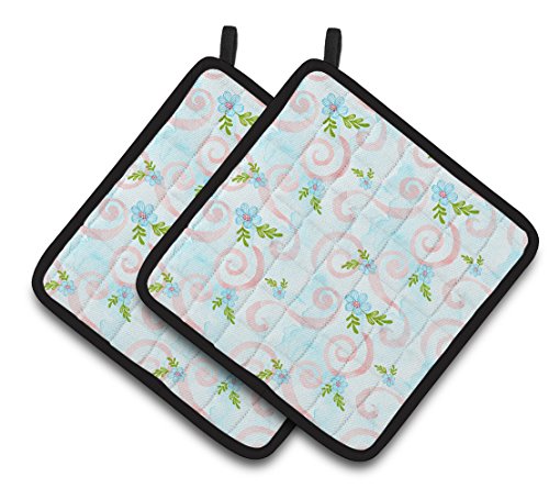 Caroline's Treasures BB7482PTHD Watercolor Blue Flowers and Swirls Decorated Pot Holder, 7.5" x 7.5", Multicolor