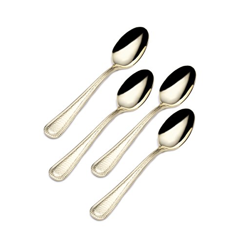 Gourmet Basics by Mikasa Halston Gold-Plated Stainless Steel Demitasse Spoon (Set of 4), Silver