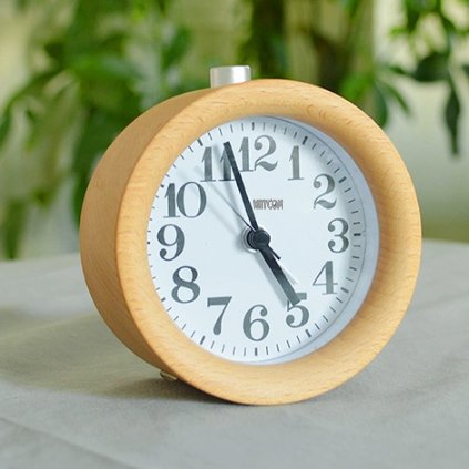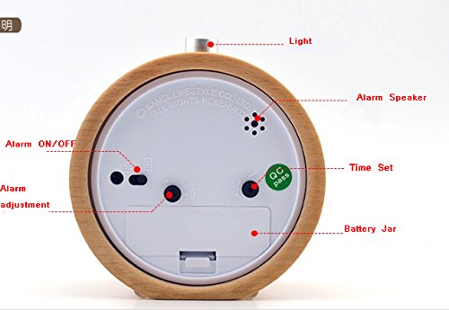 WAYCOM Classic Small Round Wood Grain Mute Table Alarm Clock with Nightlight