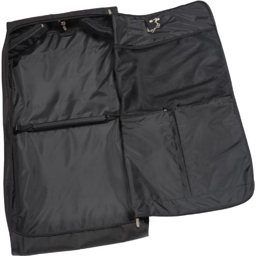 Studio : WallyBags Publisher : WallyBags Binding : Apparel Product Description It’s all inside. Easy to carry-on or check-in, clothes stay neat and wrinkle-free in this lightweight, framed shoulder strap garment bag with WallyLock hanger clamp. The Wally clamp holds up to six garments and accepts any type of hanger so clothes won't fall to the bottom of the bag. Durable, lightweight and stylish fabric is water repellent, providing all weather protection. Superior construction guarantees long-lasting performance. This framed garment bag folds in half, secured with side clips, and includes a padded, adjustable shoulder strap for hands free carrying. Two large exterior pockets are featured for packing a toiletry bag and other accessory items, as well as multiple organization pockets on the inside for packing extra clothing and shoes. Great for business travelers and savvy globetrotters! Conveniently fits in the airplane’s overhead bin and can be used as a carry-on item for most airlines or easily check it in as checked baggage. Three year limited manufacturer’s warranty. Dimensions: 45L x 22W x 4D (inches) Folded Dimensions: 21L x x22W x 8D (inches) *Length and Depth is approx and dependant on the amount of clothing packed. 0
