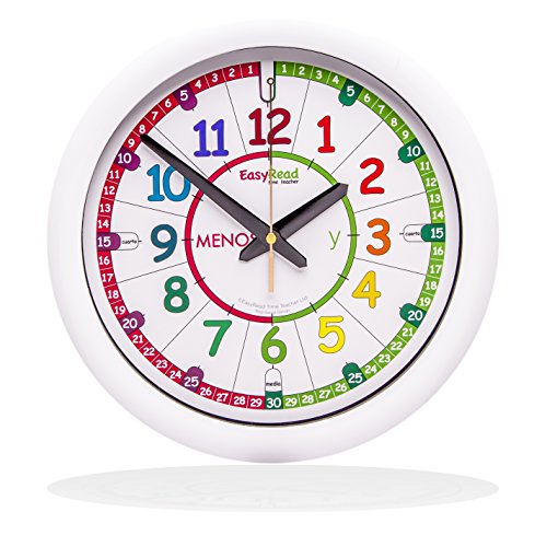 Spanish EasyRead Time Teacher Children's Wall Clock: with simple 3-step teaching system. 12 inch dia, learn to tell the time in Spanish, ages 5-12