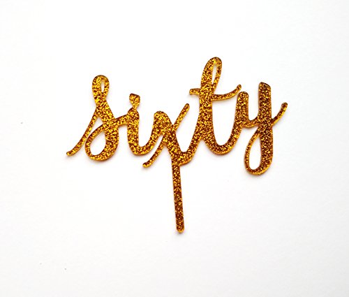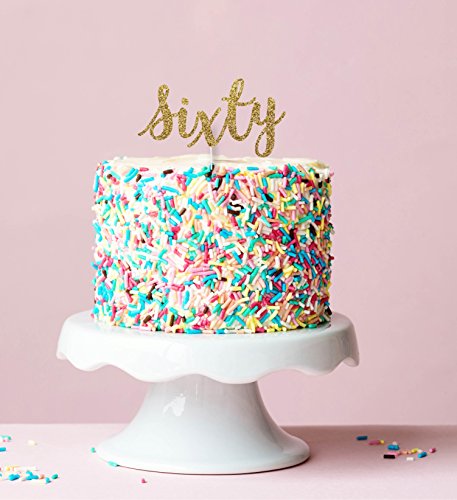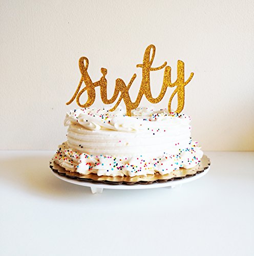 60th Birthday Cake Topper in Gold Glitter - Sixtieth 60 Sixty Party Decoration
