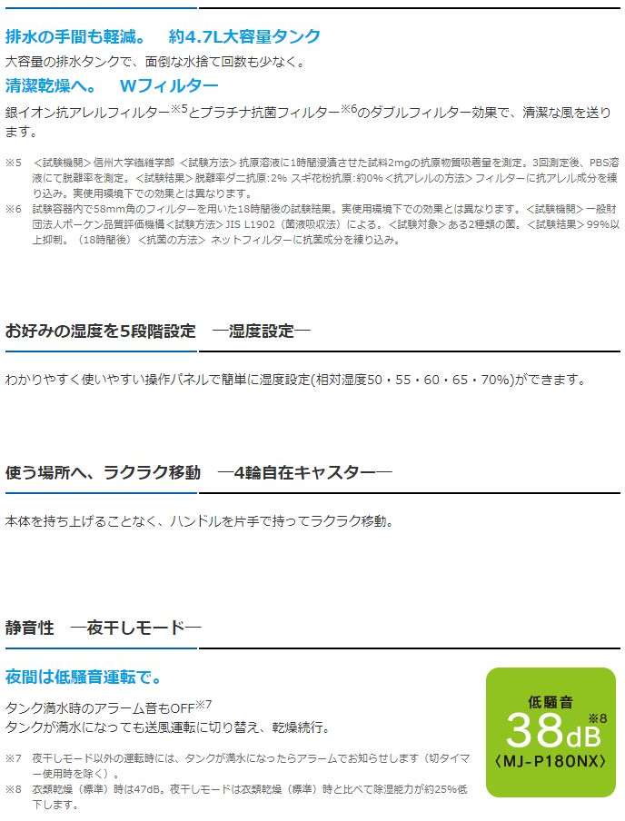 ●除湿能力※1(50Hz・60Hz):15.5L・18L/日