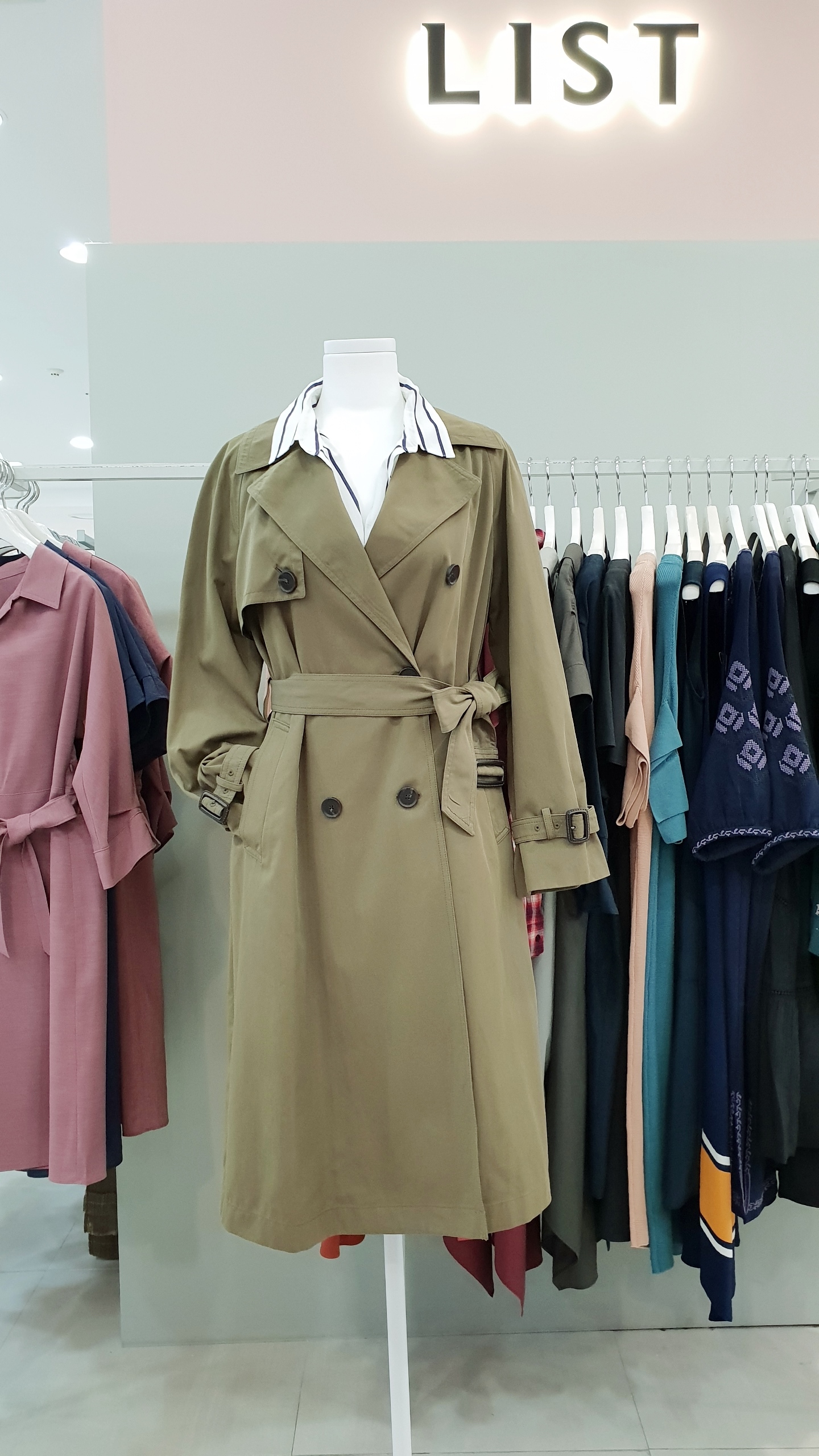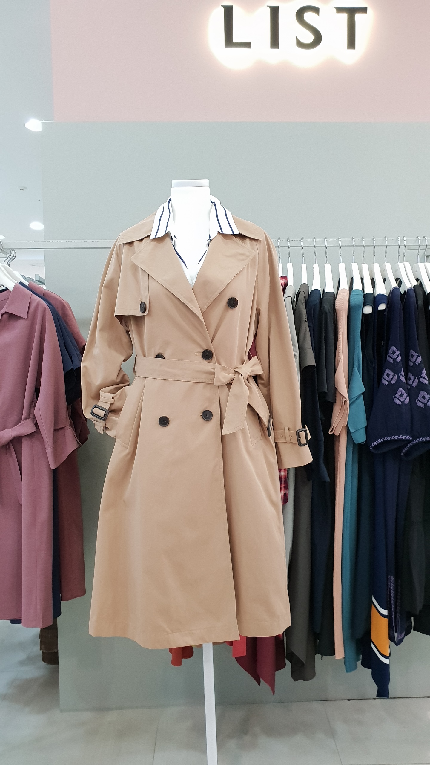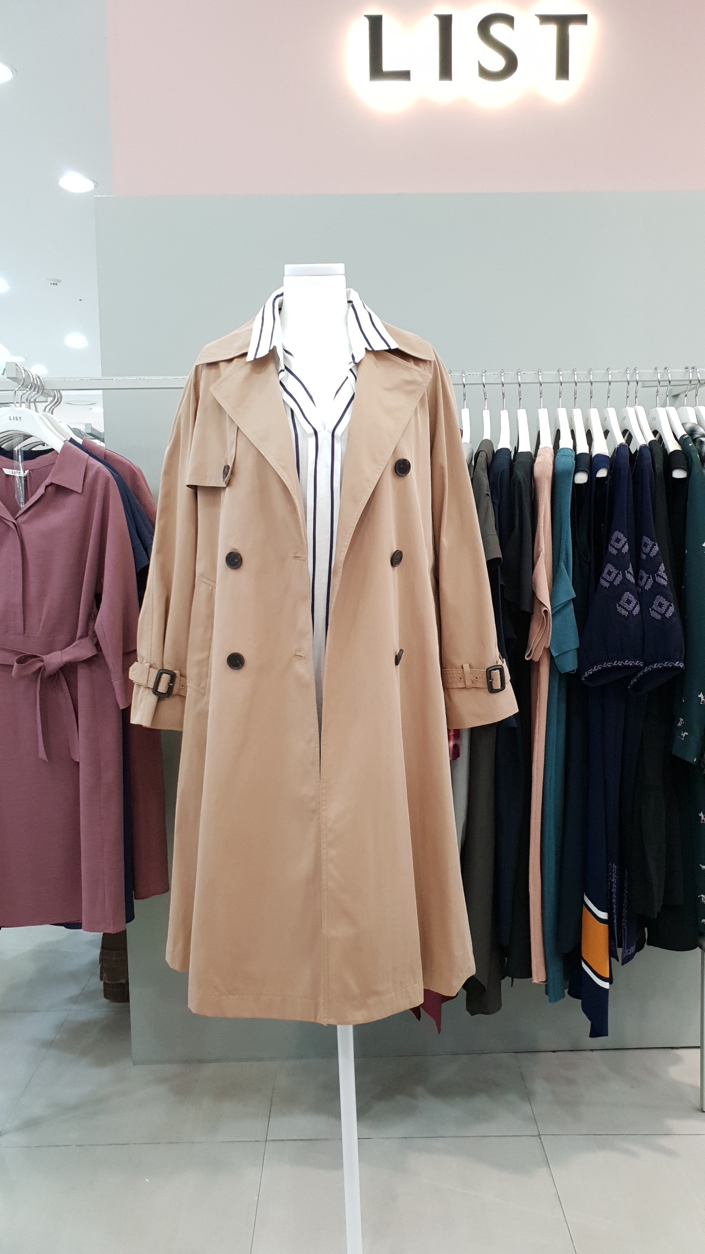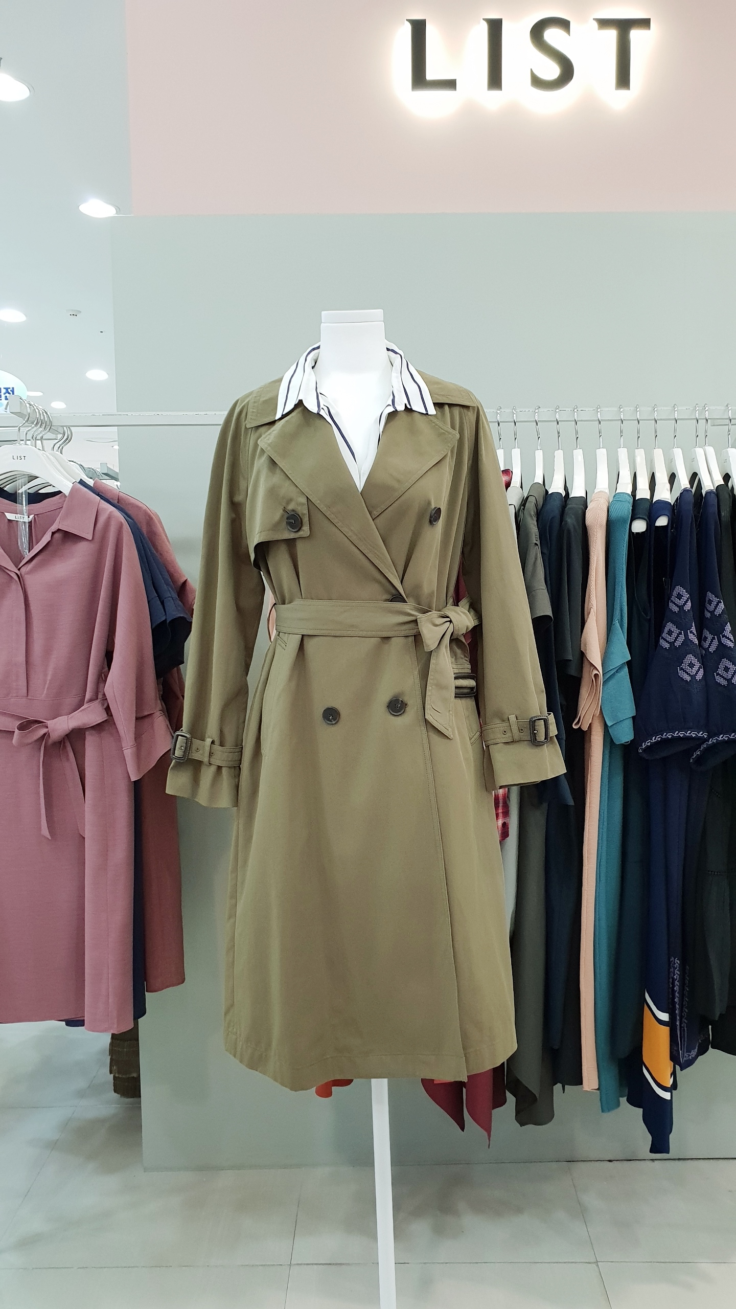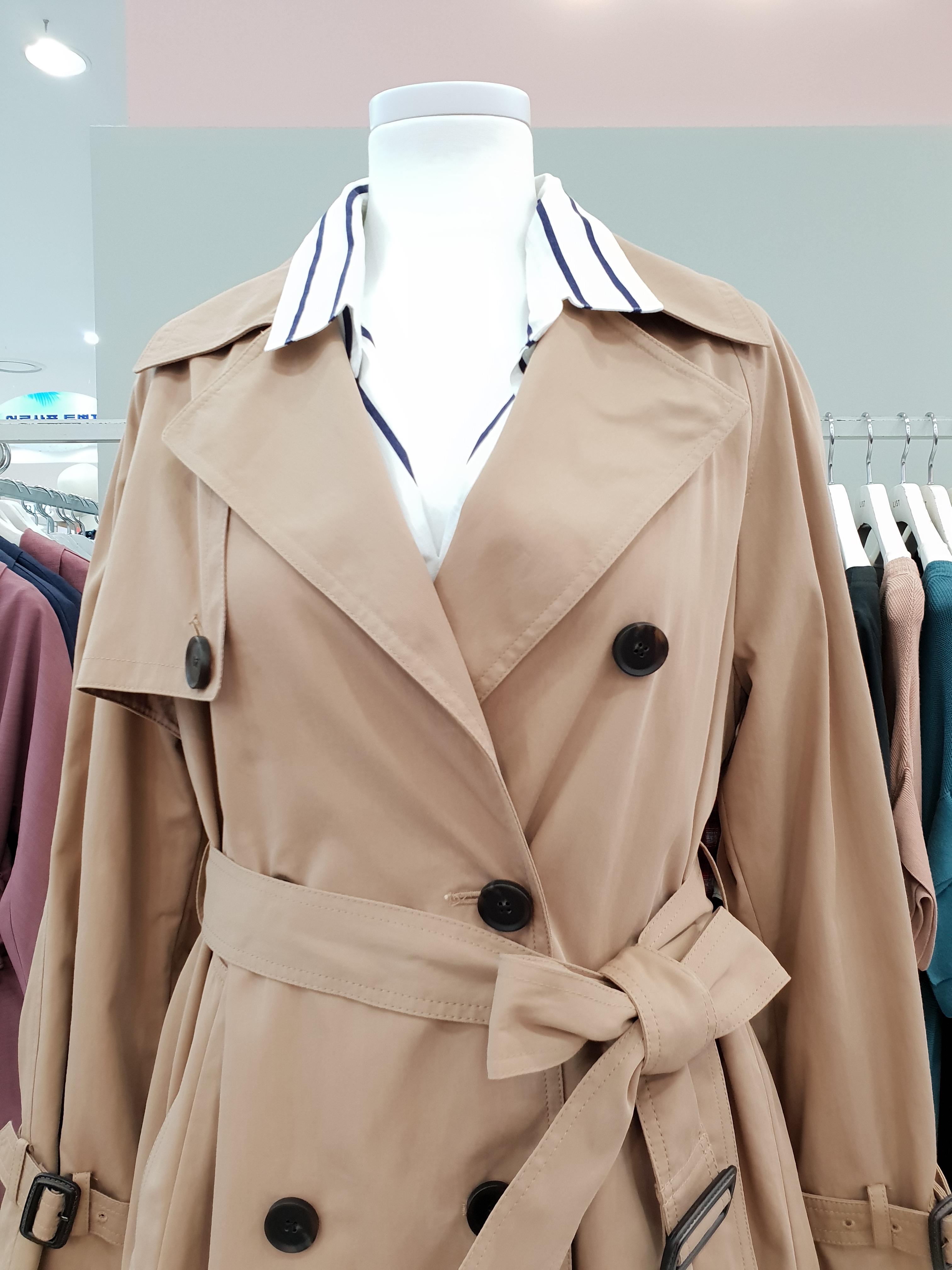 면혼방의 루즈한핏으로 멋스럽게 연출이 가능한 트렌치 코트 입니다. 가을분위기를 한껏 뽐낼수 있는 카키,베이지 2가지 컬러 구성으로 둘다 소장의 가치있는 아이템 이예요~ 55사이즈 기준 가슴둘레 단면 52cm 총기장 101cm