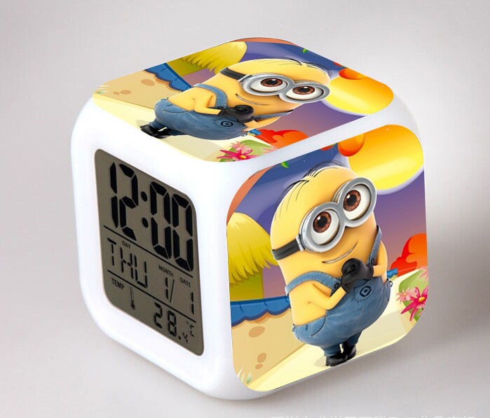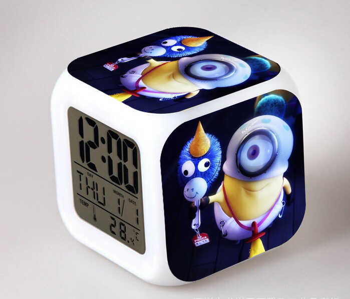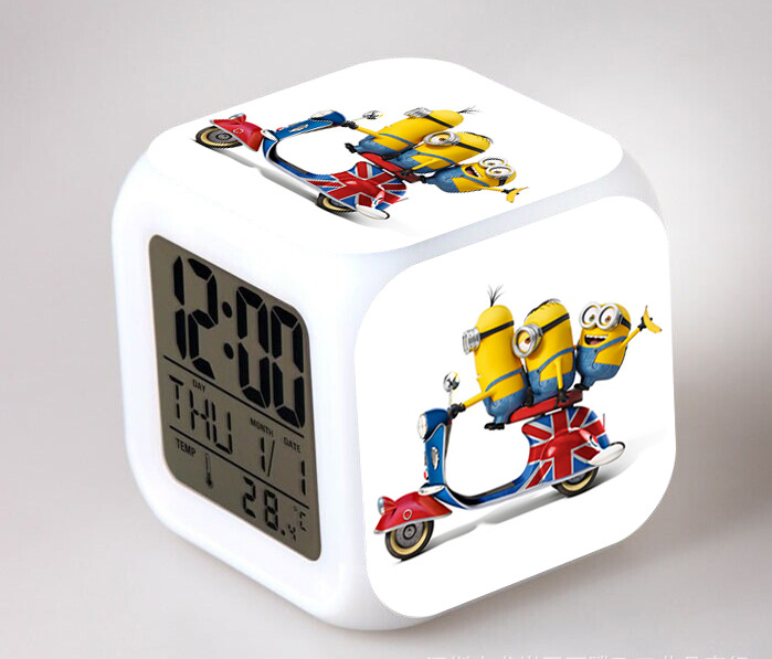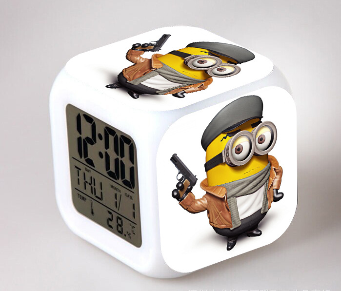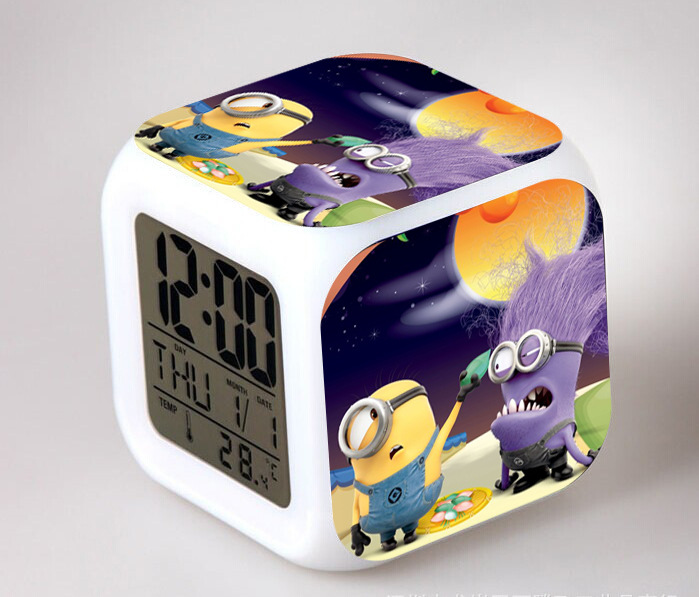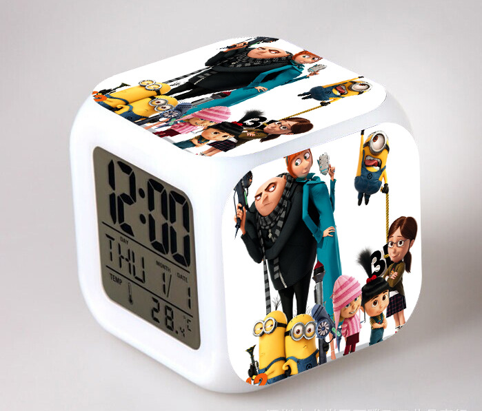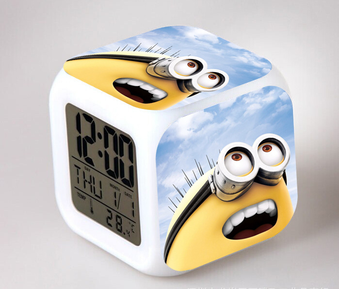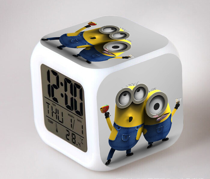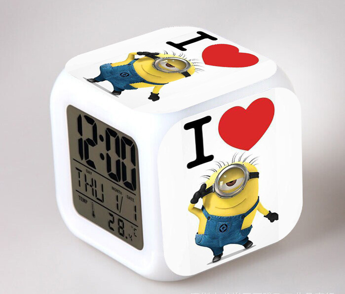 2016 Christmas Gift Kids Birthday Presents LED 7 Color Flash Alarm Clock Despicable Me 2/3 MINIONS Digital Clocks Free shipping Christmas gift Singapore CL22