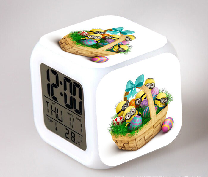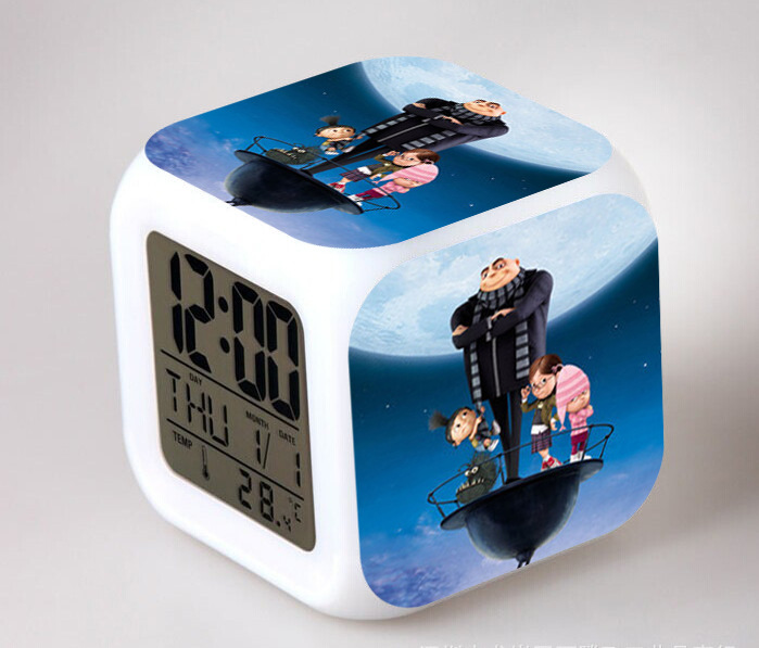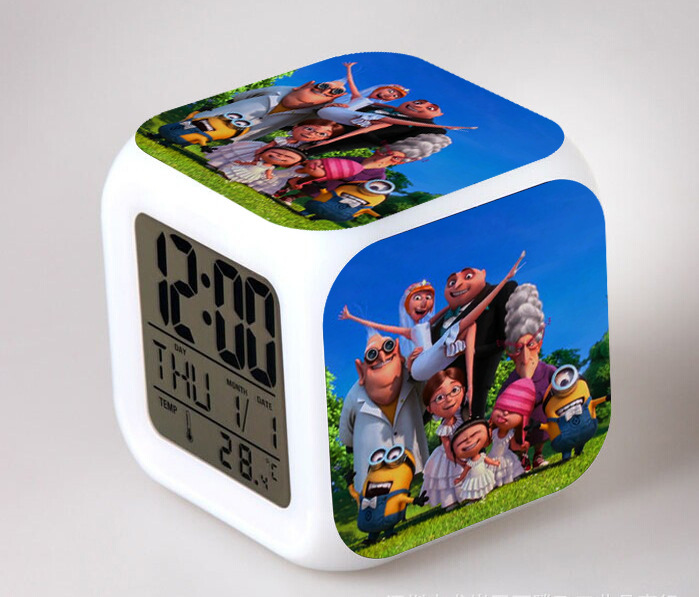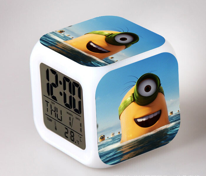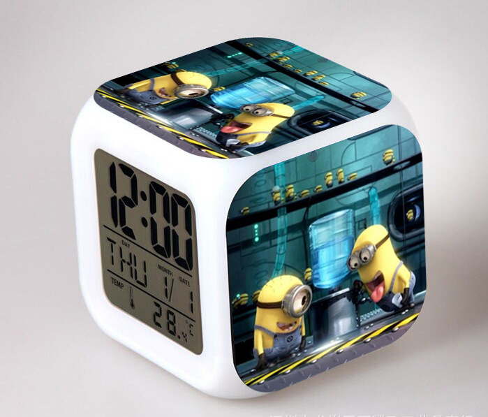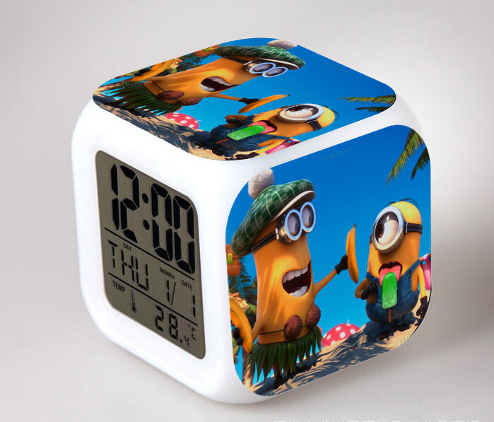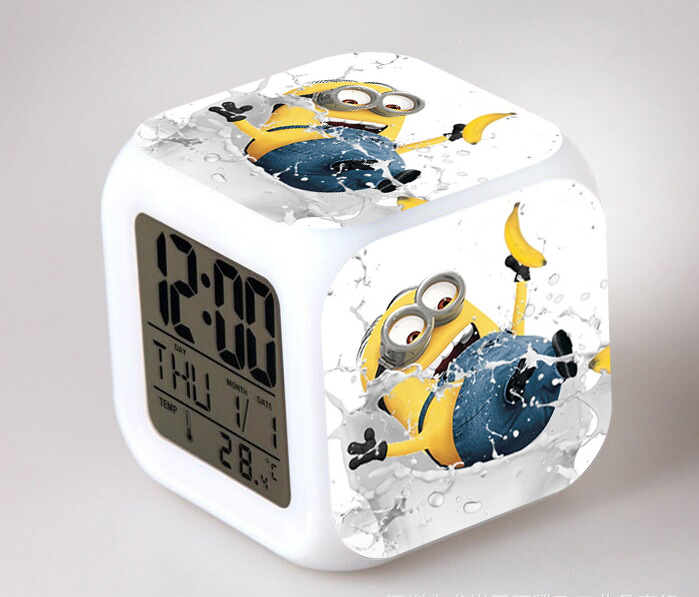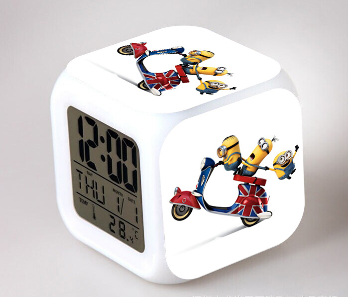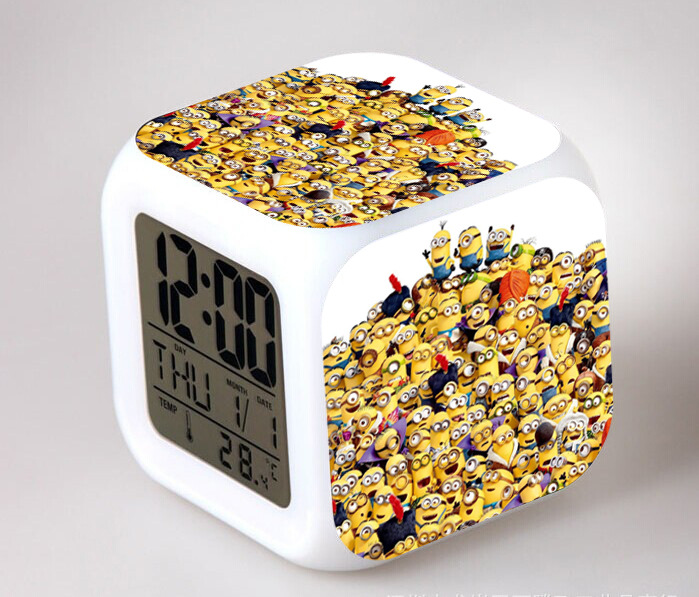 2016 Christmas Gift Kids Birthday Presents LED 7 Color Flash Alarm Clock Despicable Me 2/3 MINIONS Digital Clocks Free shipping Christmas gift Singapore CL22