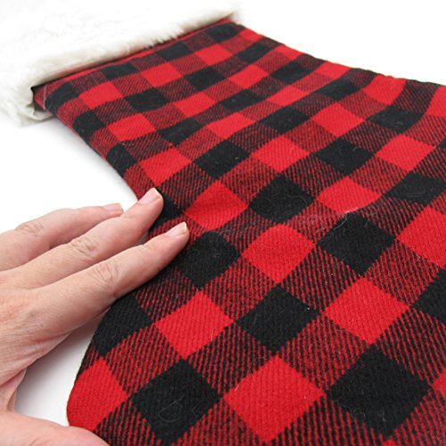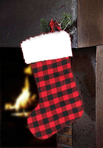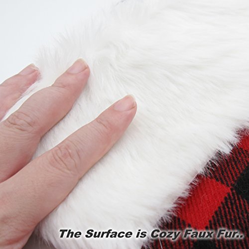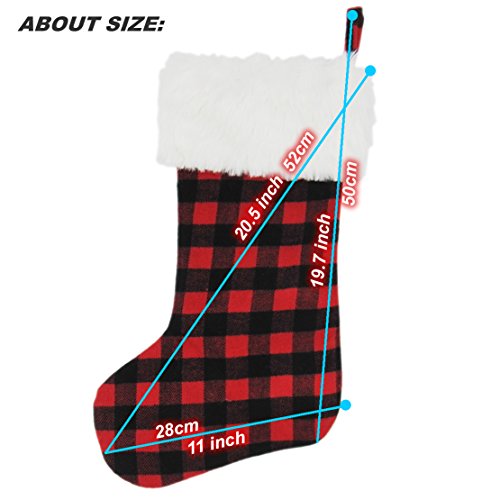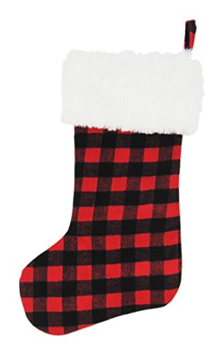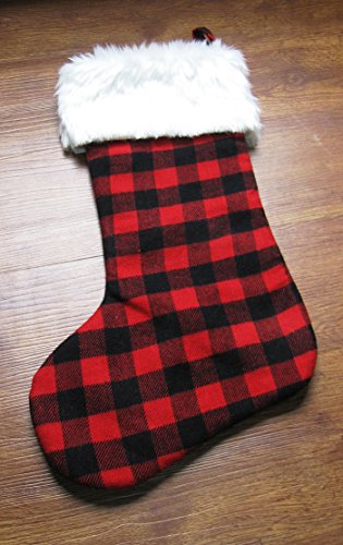 EDLDECCO 20.5 inch Christmas Snowy White Faux Fur Red and Black Plaid Stocking for Holiday party decorations gift-One Piece