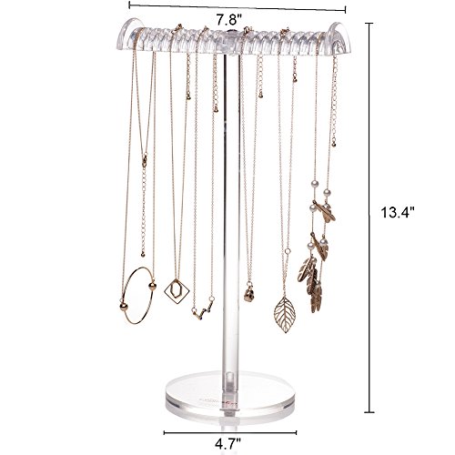 The horizontal bar hangs up to 10 jewels and accessories on each side, it’s perfect to collect necklaces up to 11 inches in length. Please note that the vertical bar is not adjustable