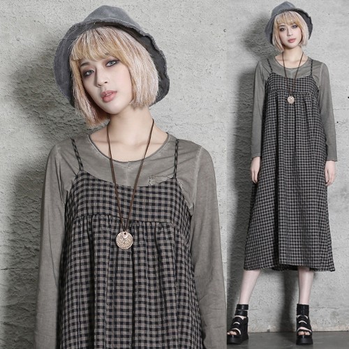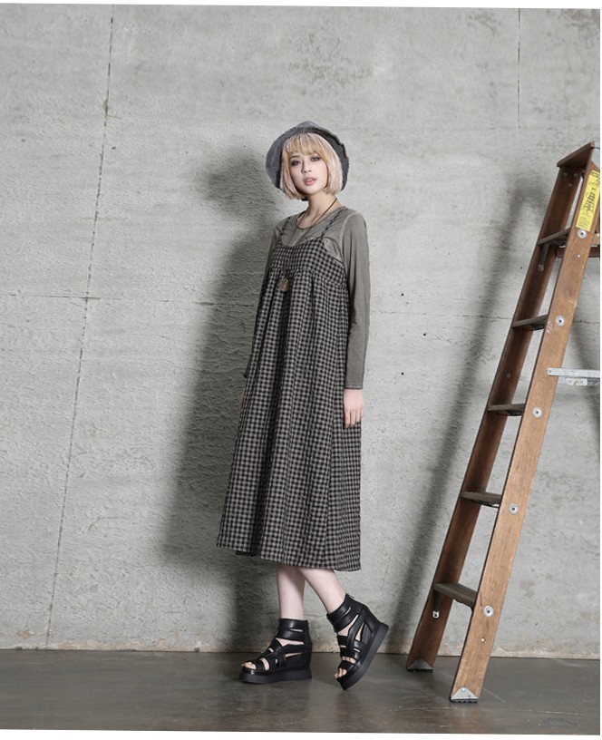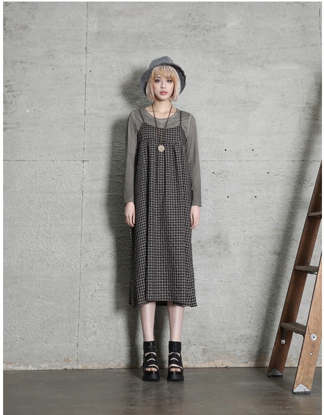商品名:キャミソールワンピース レディース ロング丈 チェック 春 2018 モード系 個性的 40代 ファッション
