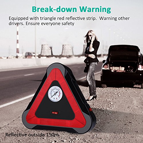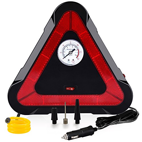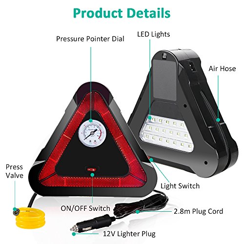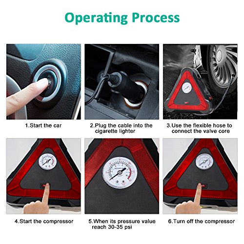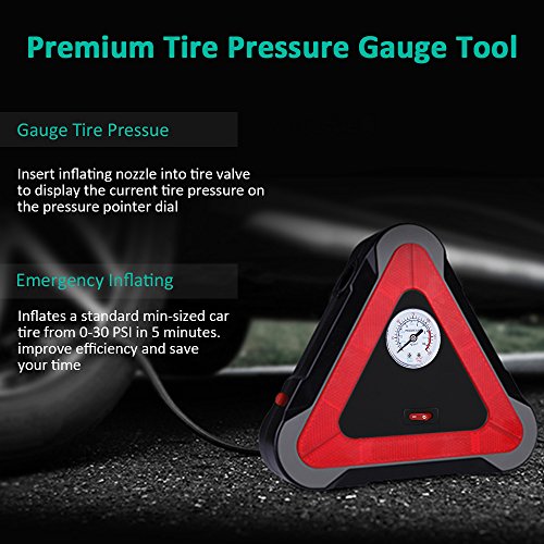[POWERFUL YET COMPACT]: Max pressure 150 PSI. The air compressor inflates a standard mid-sized car tire from 0-30 PSI in 5 minutes. Compact design is user-friendly for storage in your trunk.