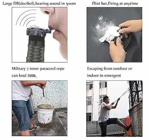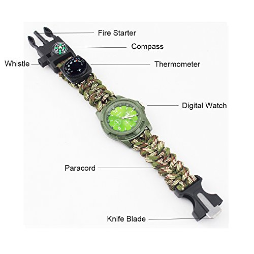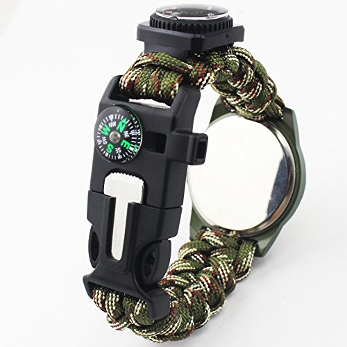 - MULTI WATCH: Bracelet Watch + Compass + Whistle + Thermometer + Fire Starter +Blade + Paracord, 7 in1