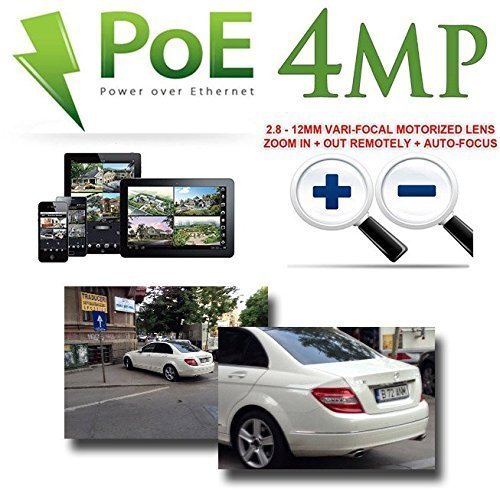 *****New Technology***** Built in 2.8~12mm 4X Optical Motorized Zoom Varifocal Megapixel HD lens with IR-CUT which allow you to adjust the angle of View and Remotely Zoom In & Out through NVR, Computer, Phone or Tablet