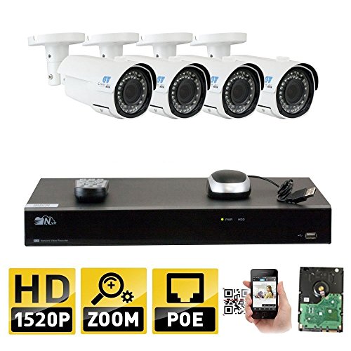 GW 8 Channel H.265 NVR 4-Megapixel (2592 x 1520) 4X Optical Zoom Network Video Security System, 4pcs 4MP 1520p 2.8-12mm Motorized Zoom POE Outdoor Bullet IP Cameras, 130ft Night Vision