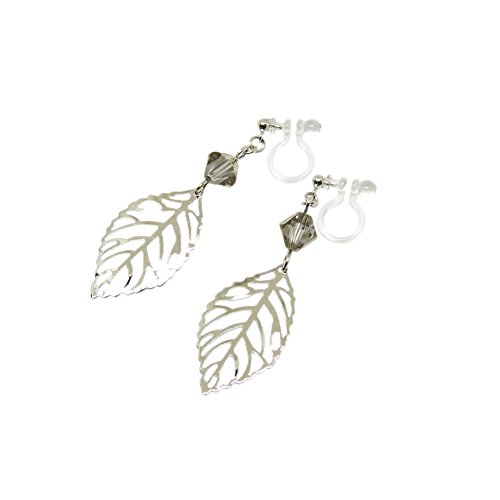-. Title : [FABBRO] スワロフスキー クリスタル グレージュ クラシカル リーフ 樹脂 ノンホールピアス ロジウムカラー 日本製 イヤリング