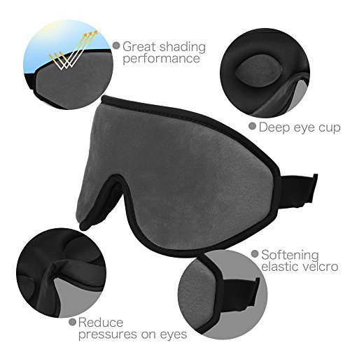 All these problem will be solved by this amazing 3D memory foam eye cover. Deep cup,Memory Foam eye cover, Adjustable Velcro strap, High Quality Shading Performance ,So Fashion Design, A pair of earplugs as extras. This would be the best eye mask you could find on amazon.