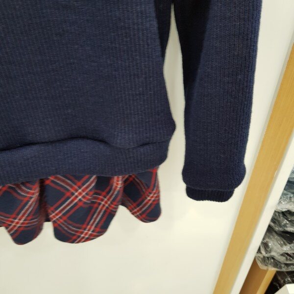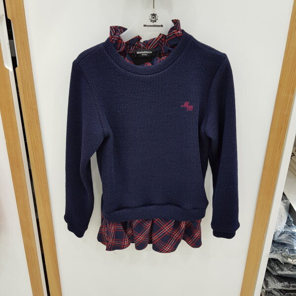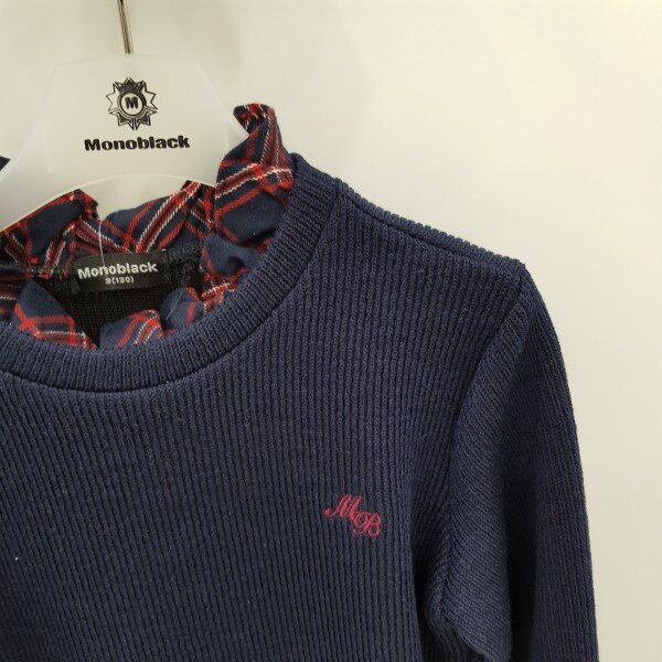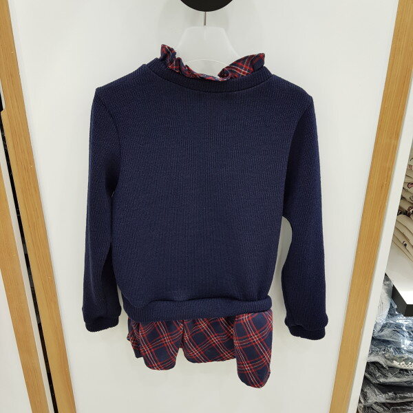 네이비색상의체크레이어드롱티셔츠입니다.