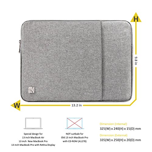 Laptop sleeve designed to fit Apple 13-inch MacBook Pro with/without Touch Bar and Touch ID release in 2017 & 2016 (A1706/A1708) or 13-inch MacBook Pro with Retina Display (Model: A1278) and 13-inch MacBook Air perfectly (Internal dimensions: 325 x 240 x 15 mm). This laptop case will NOT fit 13-inch MacBook Pro with CD-ROM (Model: A1278) version early 2012.