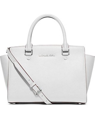 Michael Kors Medium Selma Saffiano Leather Satchel Bag Optic White