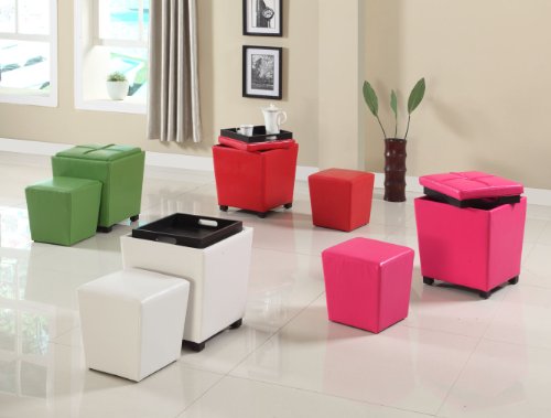 - Feature : Ottoman with serving tray top can be used as ottoman or end table / Snow White Fun color reveal bi-cast vinyl upholstery / Opens to reveal smaller ottoman inside / Full assembled / Storage Ottoman: 16x 16x 17.5in. H; Inside Ottoman: 12x 12x 12in. H