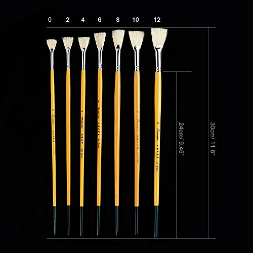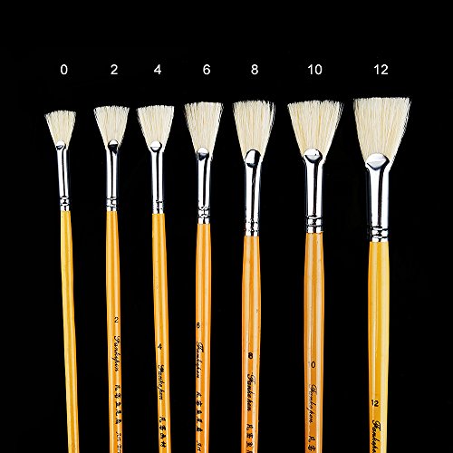 Lightwish White Bristle Stiff Fan Brush Paint Set of 7 for Oil, Gouache, Acrylic