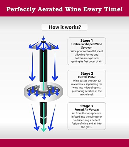 -. Feature : NO-FUSS, AERATOR, NO-MESS DESIGN - Unlike other wine aerators on the market, the Giddy Up USA Wine Aerator has a wide opening and a deep chamber that prevents overflows and dripping. With no air holes on the sides, there's no risk of spilling or splashing either. Finally, you can aerate red wine without having a sticky mess to wipe up when you're finished. / GREAT GIFT FOR WINE LOVERS - Anyone who drinks red wine can benefit from the Giddy Up USA Wine Aerator. / MORE EFFECTIVE - A unique three-stage aeration system makes Giddy Up USA Wine Aerator 3 times as effective as other wine aerators. / NONTOXIC, DURABLE MATERIALS - Made only from FDA-approved materials, This Wine Aerator is even dishwasher safe for easy cleanup. / SAY GOODBYE TO WINE BREATHING - With Giddy Up USA Wine Aerator, you can open the bottle, pour and enjoy. This wine aerator fully oxygenates red wine to bring out the complex flavors and aromatic bouquets of whatever you're drinking. The aerator truly turns any red wine into a fine wine.
