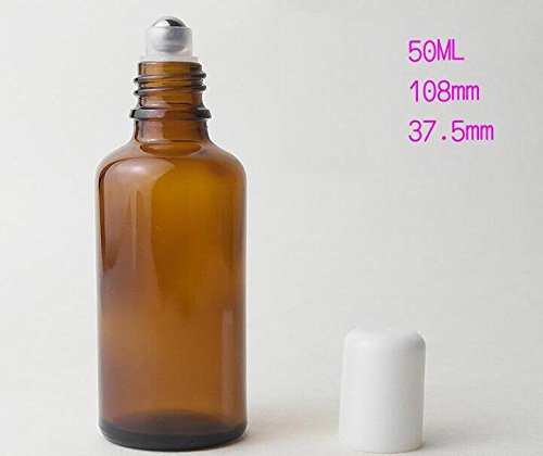 6PCS Brown Empty Glass Refillable Roll on Bottles Roller Bottle Container With Stainless Steel Balls For Essential Oil Lip Balms Perfume (50ML)