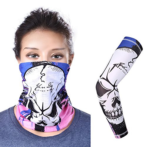 Vbiger Face Mask + Sports Compression Arm Sleeves ,Sun Protection Set for Cycling Basketball Football Baseball