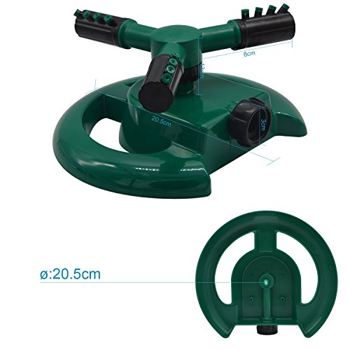 -. Feature : Fully adjustable range control! The US Standard connector in seconds to start watering instantly. There is no easier sP.R.Inkler. / Three Arm Rotary Lawn SP.R.Inkler, and 360-degree rotation. Ideal for watering smaller size yards and gardens. Heavy-duty all plastic construction lasts season-after-season / Two different spraying angles include a slower rotating 90° with a 4-6m spray diameter and faster 45° with 8-10m treatment. / Made with high-quality ABS plastic and a rust proof polymer, Like any good summertime sP.R.Inkler, it can also be used for kids' playtime, enjoy your water time. / Premium Quality Garden Lawn SP.R.Inklers, Best Fun Water SP.R.Inkler System - Gardens & Kids Love Them
