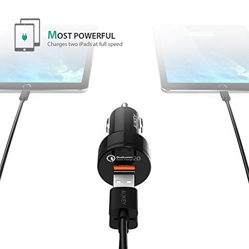 AUKEY: Amazon's #1 Quick Charging Brand Qualcomm Quick Charge 2.0 Tech Thanks to Qualcomm Quick Charge 2.0 Technology, AUKEY car charger charges compatible devices up to 75% faster than a standard charger.