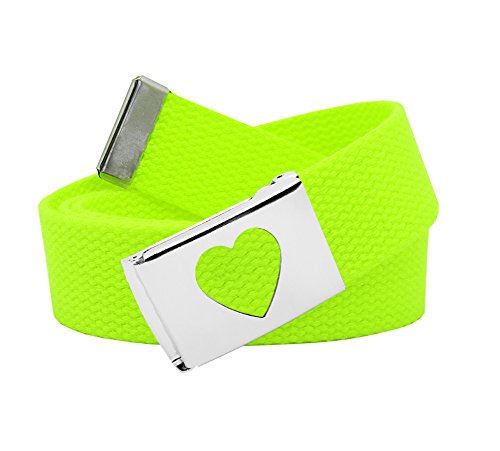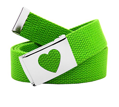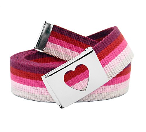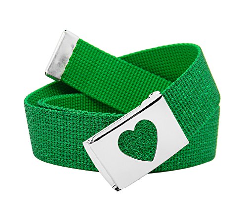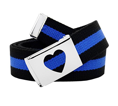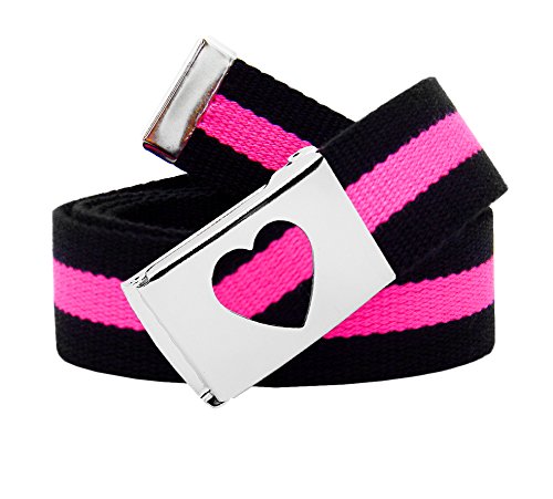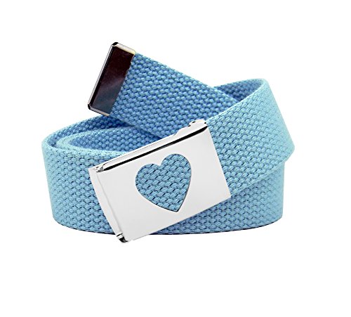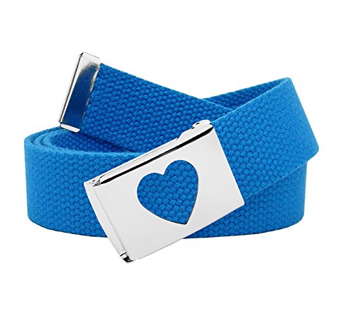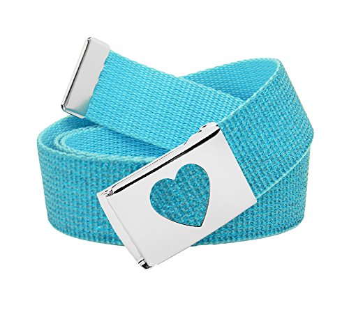 Build A Belt School Uniform silver flip top military style buckles with canvas web belts are available in a variety of colors and sizes for kids of all ages. All buckles and canvas belts are 1.25 inches wide, and the web belts fit through most belt loop sizes. Belt webbing is made of a high quality acrylic that is color fast and does not fray.
