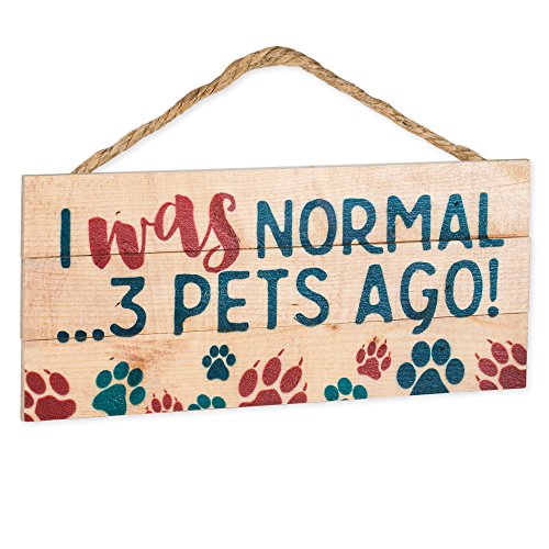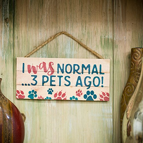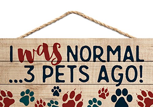 I Was Normal…3 Pets Ago Pawprints 5 x 10 Wood Plank Design Hanging Sign