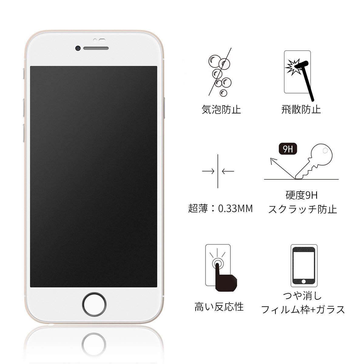 【9H hardness, scattering prevention, bubble prevention, fingerprint prevention】