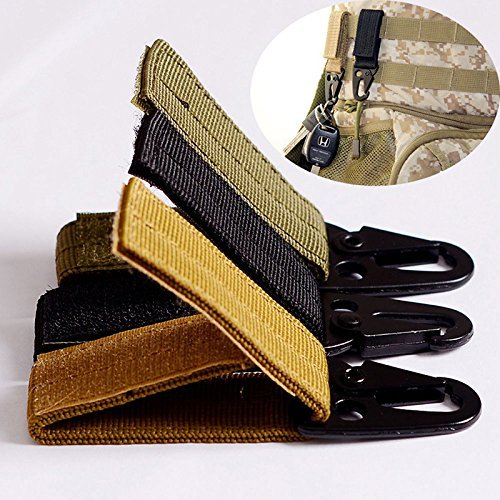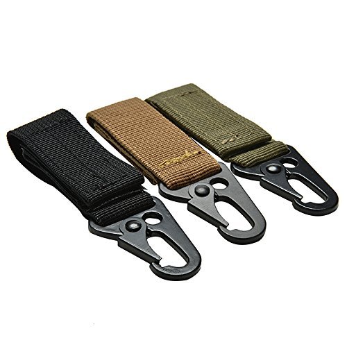Ioffersuper 3 Pcs Practical Military Nylon Key Hook Webbing Molle Buckle Hanging Belt Carabiner Clip Black