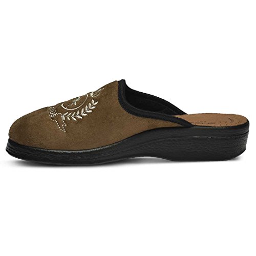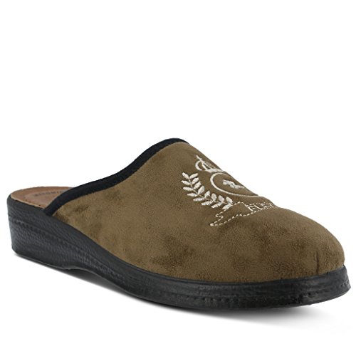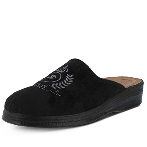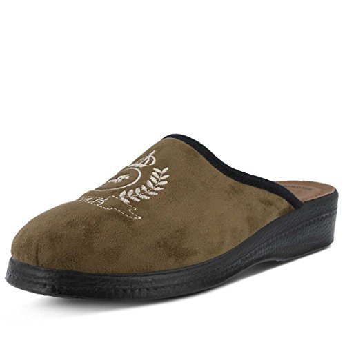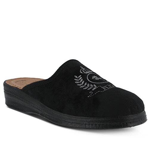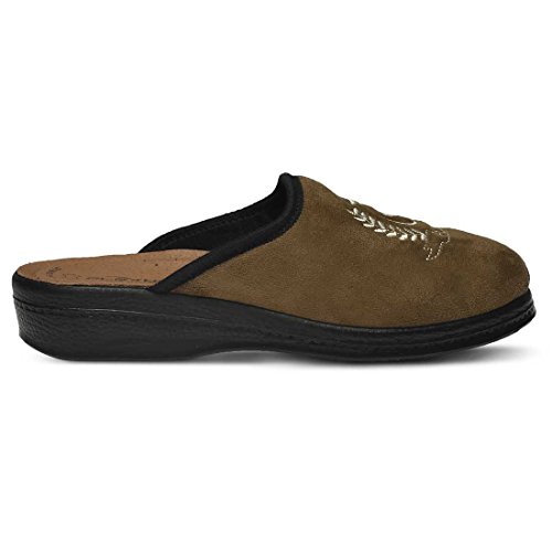 Binding : Apparel Product Description High quality soft textile upper. Classic men's slipper with decorative embroidery. Soft padded leather insole. Polyurethane outsole with 1 ½" heel. Material is naturally soft, light and breathable. Classic and Stylish. Comfortable padded insole. Naturally shock absorbent, lightweight and long lasting. 0