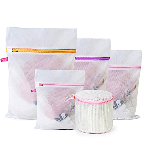 Set of 5 Mesh Laundry Bags - Yolin Zipped Wash Bags for Laundry, Shoes, Blouse, Hosiery, Sock, Underwear, Bra and Lingerie, Travel Laundry Bag