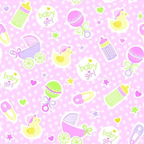 Baby Girl Jumbo Printed Gift Wrap Party Supply, Pink, Paper , 16' X 30", Pack Of 6