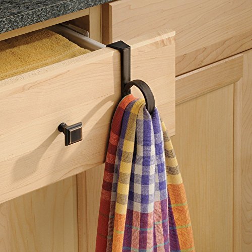 InterDesign Axis Over Cabinet Single Loop Kitchen Dish Towel Holder, Bronze