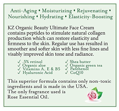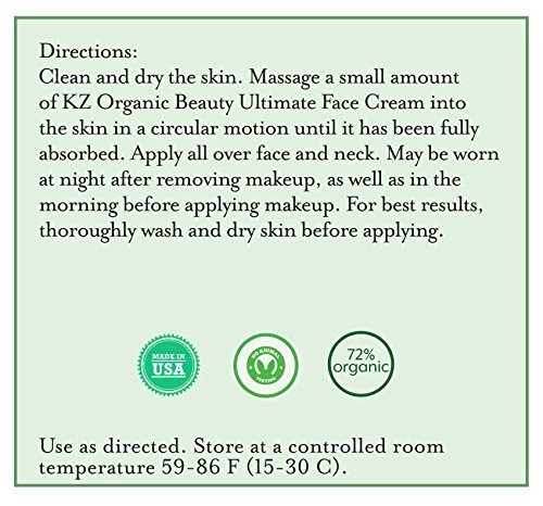 •IT'S CALLED "ULTIMATE” FOR A REASON: KZOrganic Face Cream does it all; moisturizes, nourishes, helps to reduce wrinkles, firms skin, and boosts elasticity; Can be worn during the day or night; Moisture lasts all day