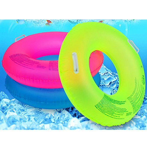 Material: PVC Random color: Fluorescent Green, Rose Red and Light Blue (Note: We will send the item by randomly.) Size: Outer diameter 100cm/39.37' Features: High-density material, non-toxic and no smell, safe and comfortable Creative swim rings with handle design Bright colors, is the best choice for summer water. Compressive and durable, good sealing. Smooth interface, will not hurt your skin. Sealed gas nozzle, will not leak, safe and reliable Note: 1. Do not inflate excess or fill high pressure gas. 2. Avoid touching fire and sharp objects. Package includes: 1 PCS Inflatable Swim Ring 0