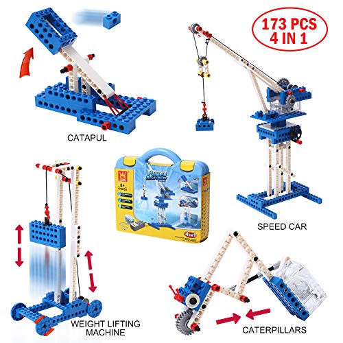 無制限の創造性:コンビネーションキットは173pcsパーツ、あなたが組み立てることができる4つの形(クレーン、カタパルト、キャタピラー、重量挙げマシン)、絶対的なプレーアビリティ、環境に優しくて健康である高品質ABS素材で作られます簡単に。