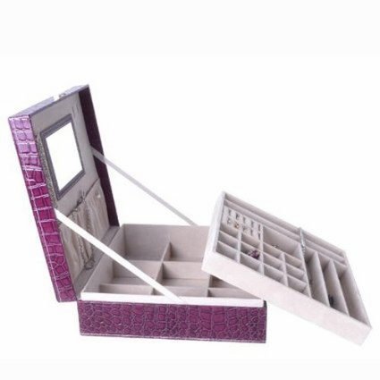 Beenlen Purple jewelry box display storage case with lock and mirror