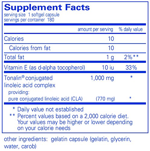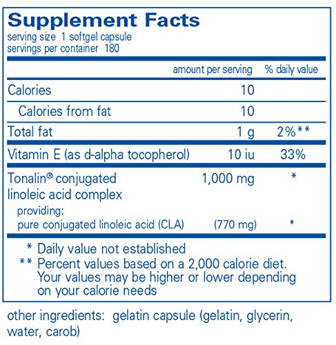 Studio : Pure Encapsulations Publisher : Pure Encapsulations Binding : Health and Beauty Product Description CLA is a naturally occurring trans isomer of linoleic acid, which may benefit body composition and support weight control. It is unique in structure because of the location of the double bonds in the linoleic acid molecule. Recent research shows that the specific isomers c9,t11 and t10,c12 play key roles in many of CLA's physiological properties. In a preliminary human study involving 60 overweight subjects, conjugated linoleic acid supported healthy body fat mass. Several animal studies explore possible mechanisms of CLA, including the ability to maintain healthy fat deposition, promote lipolysis in adipocytes, moderate energy intake, and maintain healthy energy expenditure and metabolic rate. 0