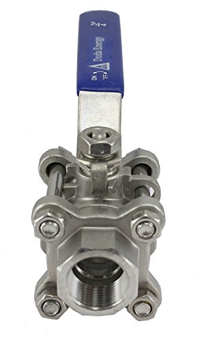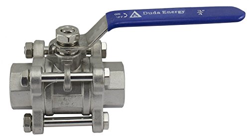 Duda Energy 3PCBV-WOG1000-F075 Full Port Ball Valve, 3 Piece, 3/4" NPT, 304 Stainless Steel PTFE Seals Water Oil Gas, .75"
