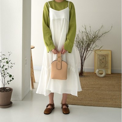 밝고 화사한 3가지의 컬러로 구성되어 얼굴빛을 살려주며봄부터 가을까지 쭉 입기좋은 롱한 기장감의 원피스입니다